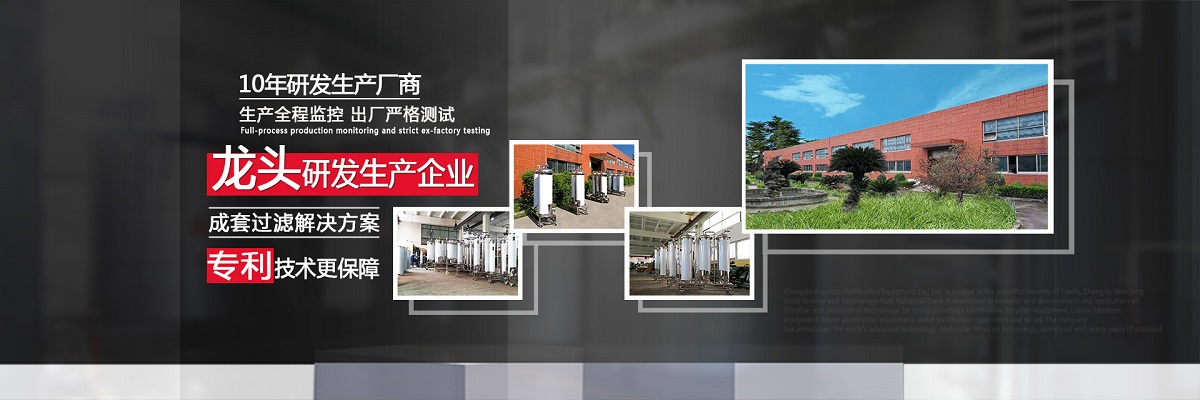 成都愛(ài)爾純凈化設(shè)備有限公司,坐落于美麗的天府之國(guó),成都市溫江區(qū)海峽科技園工業(yè)區(qū),專(zhuān)業(yè)從事于過(guò)濾、凈化技術(shù)的研發(fā)應(yīng)用,產(chǎn)品有保健酒過(guò)濾設(shè)備、白酒過(guò)濾設(shè)備、白酒凈化設(shè)備、水凈化設(shè)備等,公司引進(jìn)世界先進(jìn)過(guò)濾分子技術(shù),結(jié)合專(zhuān)業(yè)技術(shù)人員資深多年實(shí)踐經(jīng)驗(yàn),解決酒類(lèi)、飲水類(lèi)后期處理難題。 業(yè)務(wù)涵蓋,酒類(lèi)過(guò)濾:除混濁沉淀,澄清處理、除苦味,異雜味,新酒催熟陳化處理 、除塑化劑、固形物、雜醇油、甲醇及各類(lèi)含量超標(biāo)后期處理。 水類(lèi):軟水、純凈水、礦泉水、飲料等凈化處理。用心為客戶(hù)提高生產(chǎn)效率、提高產(chǎn)品質(zhì)量、降低生產(chǎn)成本、環(huán)保減排而開(kāi)發(fā)創(chuàng)新,堅(jiān)持奮斗。 公司至誠(chéng)每一位客戶(hù),“誠(chéng)信服務(wù),客戶(hù)至上”為宗旨,為客戶(hù)要求,用心凈化每一點(diǎn)滴,我們都將以精準(zhǔn)的數(shù)據(jù)化設(shè)計(jì)、嚴(yán)格的設(shè)備制作質(zhì)量把關(guān)、快捷專(zhuān)業(yè)的安裝調(diào)試以及周到的售后服務(wù),解決客戶(hù)生產(chǎn)過(guò)程中遇見(jiàn)的各種酒、水后期處理的技術(shù)難題。